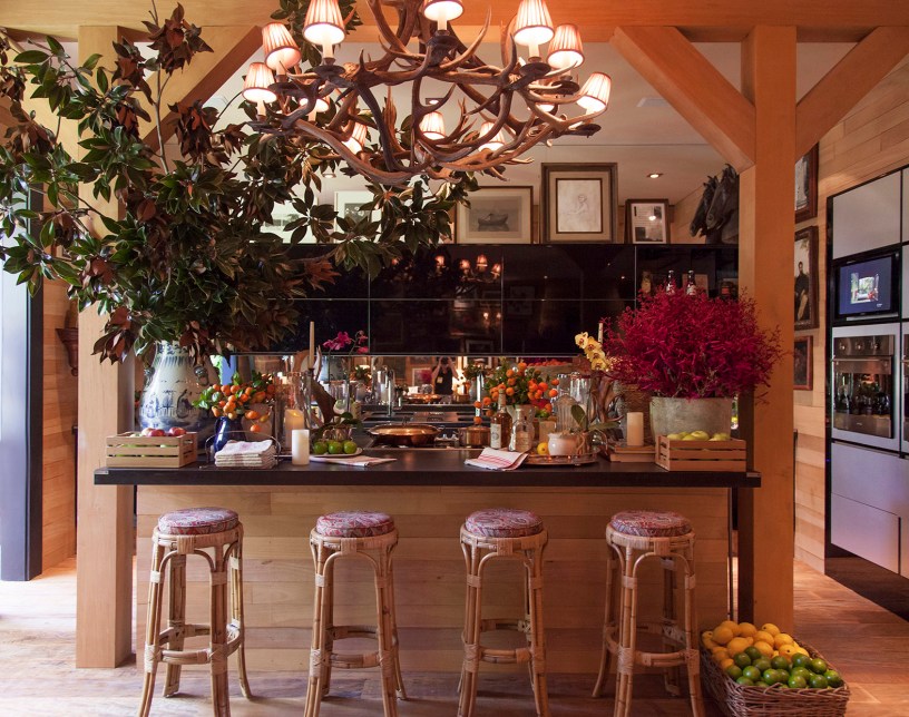 Na cozinha de Sig Bergamin a abundância de flores e frutas traz a ideia de prosperidade, abundância e acolhimento generoso.