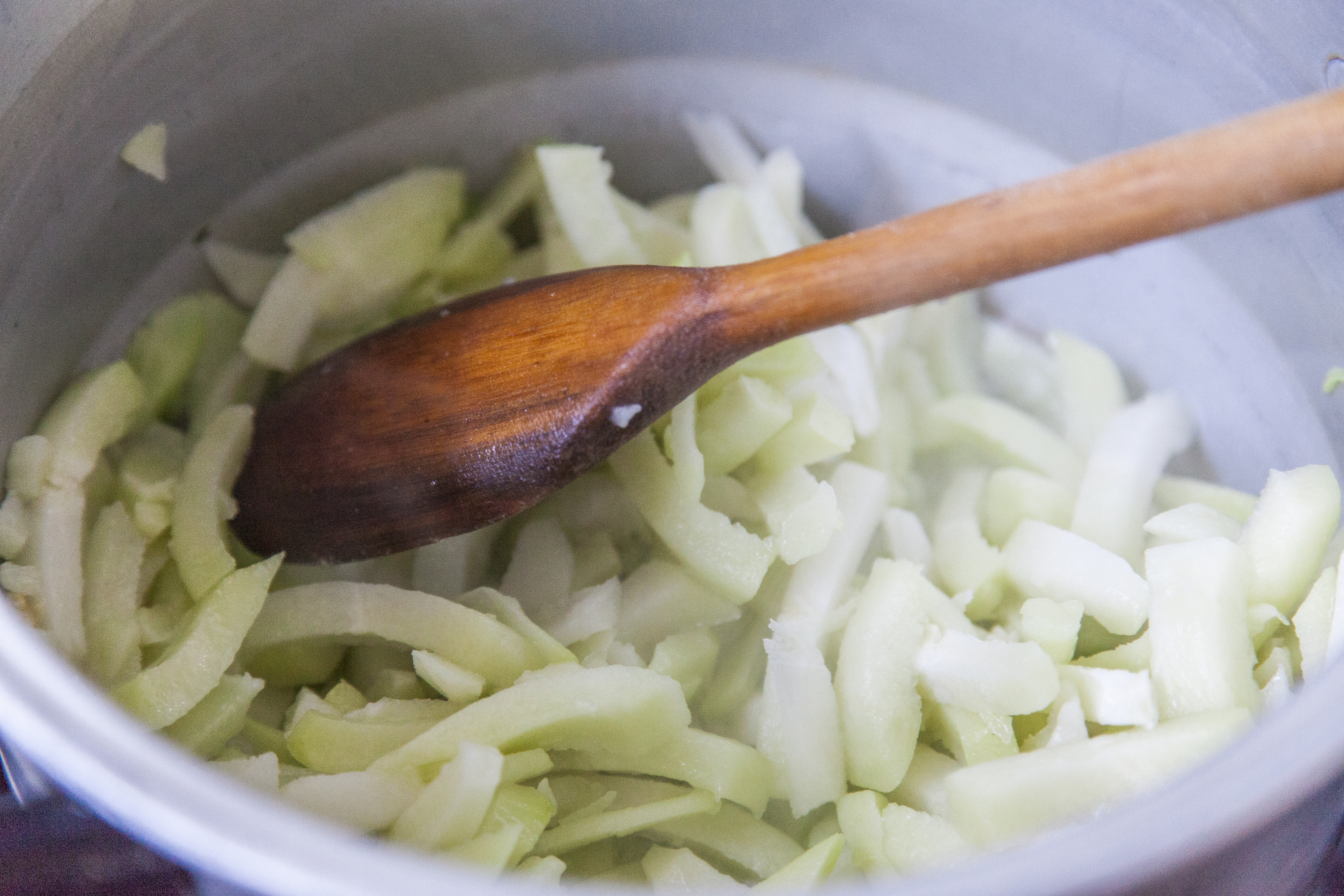 Refogue os chuchus com uns dois dentes de alho.