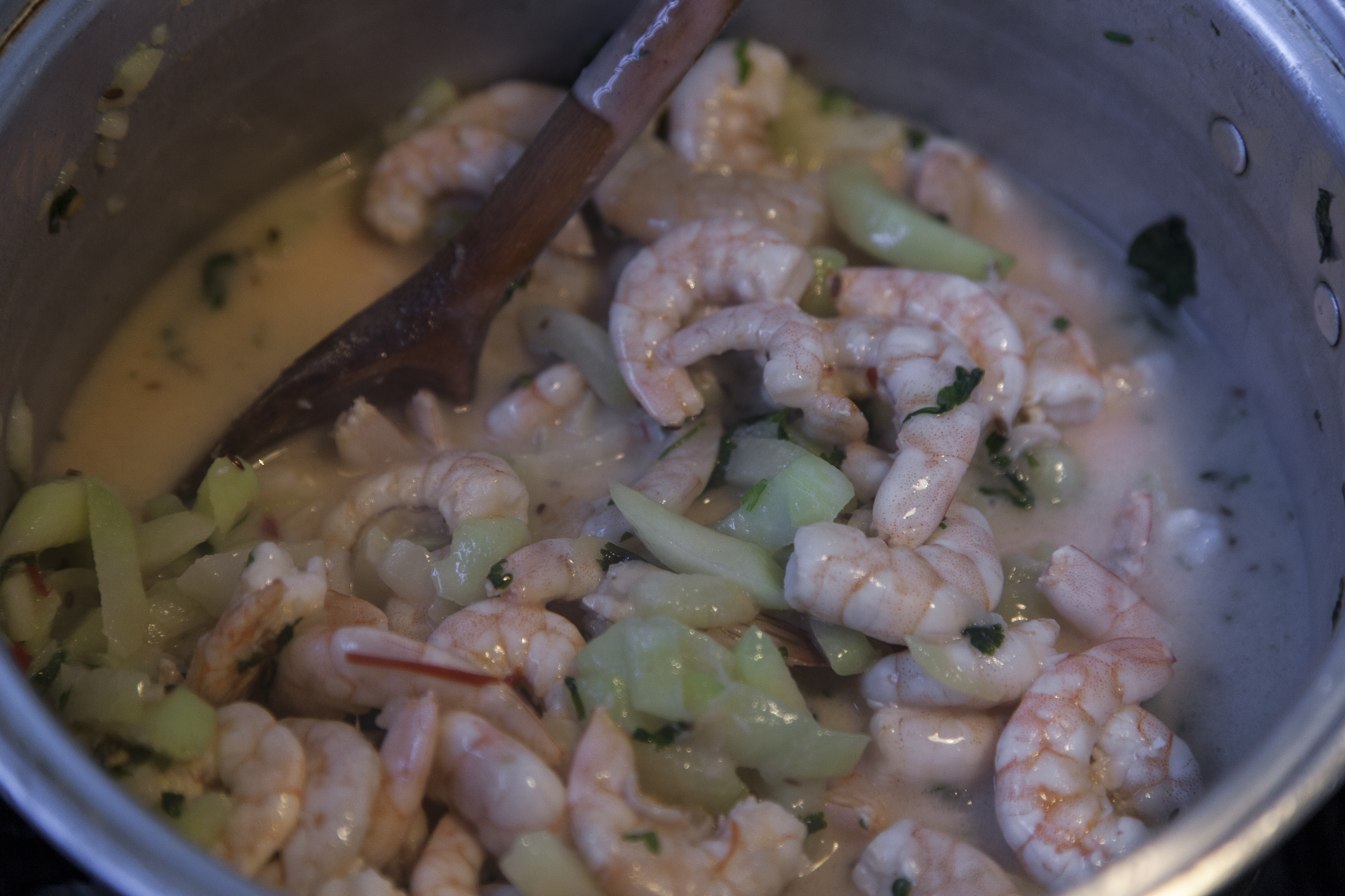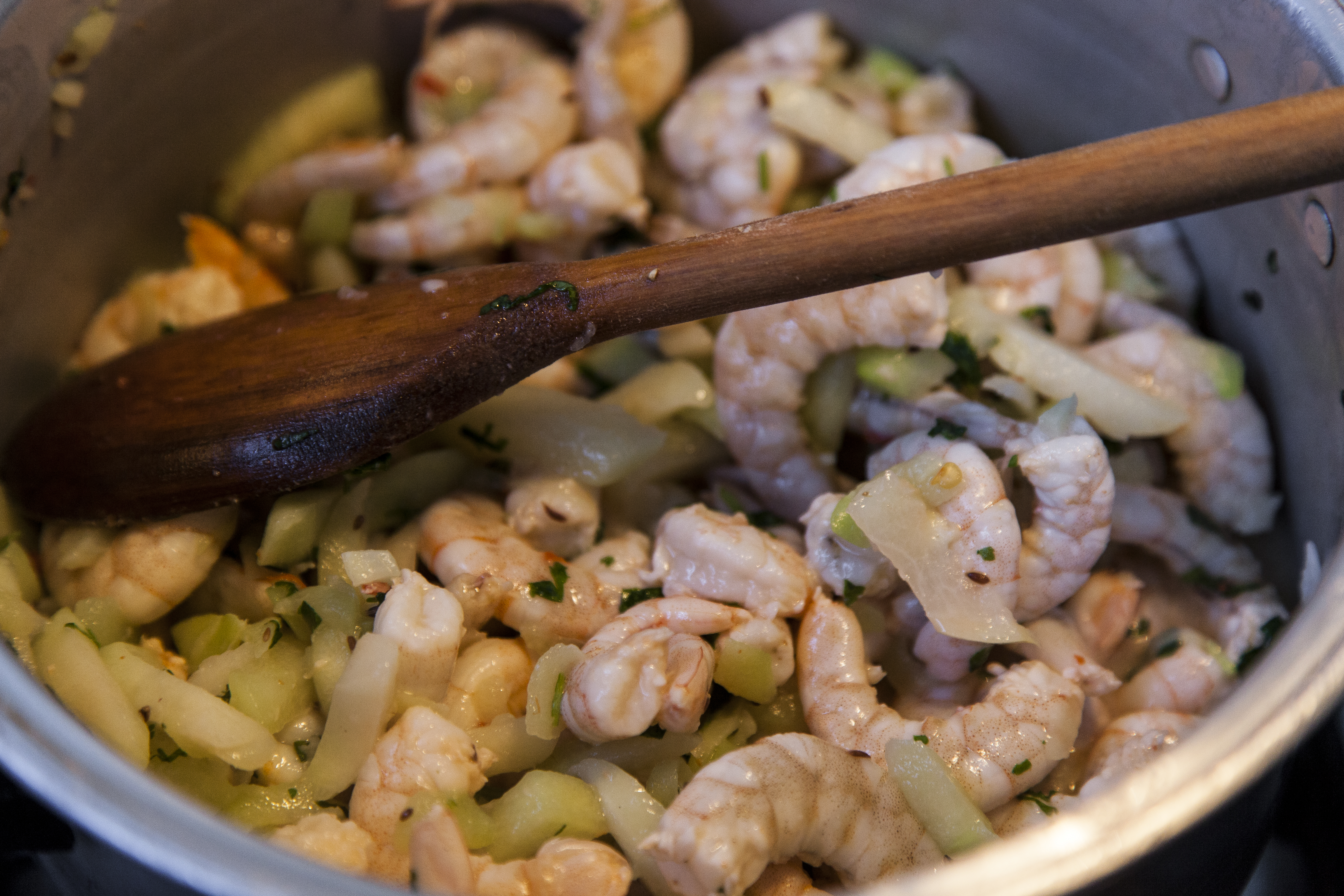 Adicione os camarões.