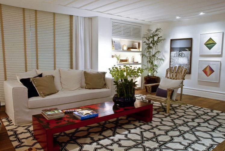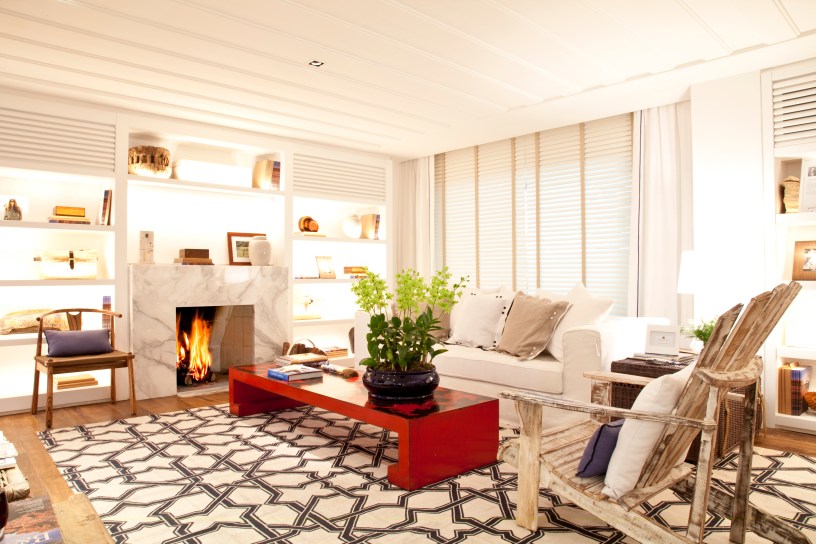 Dado Castello Branco, optou por cores claras e materiais naturais para sua sala, como persianas de madeira, piso de demolição e sofá de linho, a mesa vermelha com pintura envelhecida e a lareira Construflama completam o clima bem leve ideal para de casa de campo ou praia, mas viver todo dia assim também é uma boa…