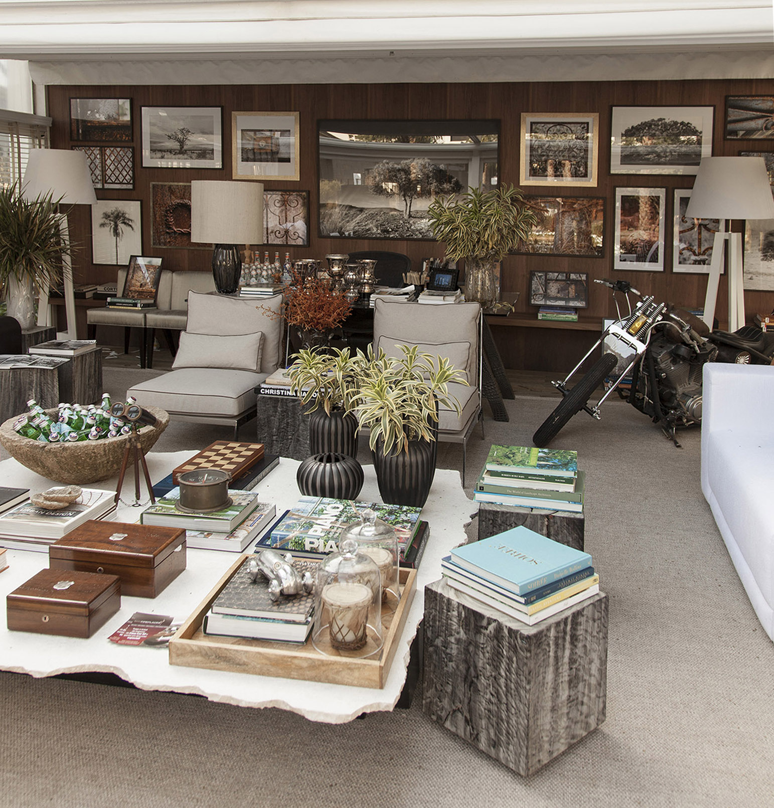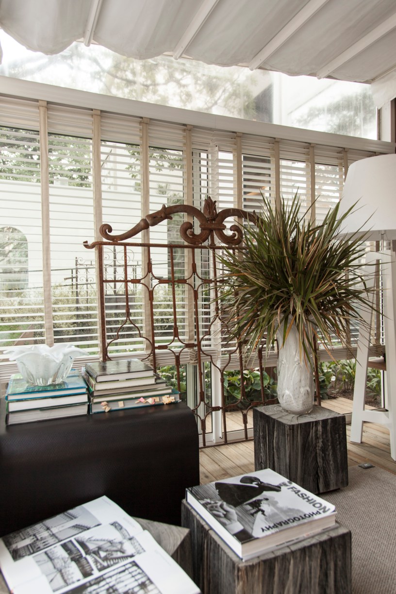 O escritório do colecionador de Christina Hamoui , na Casa Cor, foi implantado no jardim de Alexandre Furcolin. Para esta tarefa, ambos escolheram uma coleção de portões antigos e maravilhosos, alguns com mais de 150 anos, são tributo à serralheria artística que acompanhou a arquitetura no passado.