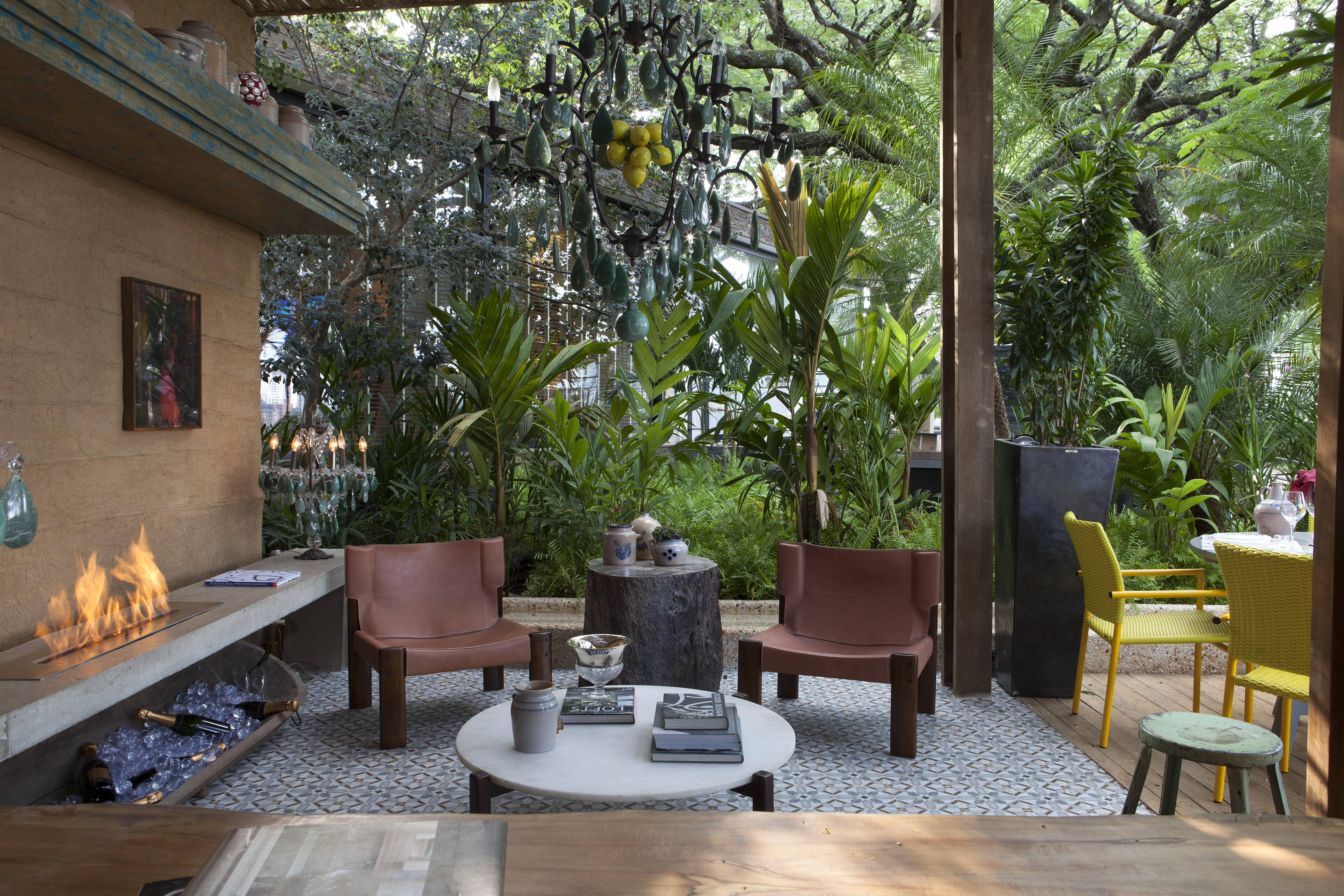 A lareira a álcool da Construflama é perfeita para o clima de contemplação e energização, tornando a varanda gostosa e convidativa mesmo em dias frios.