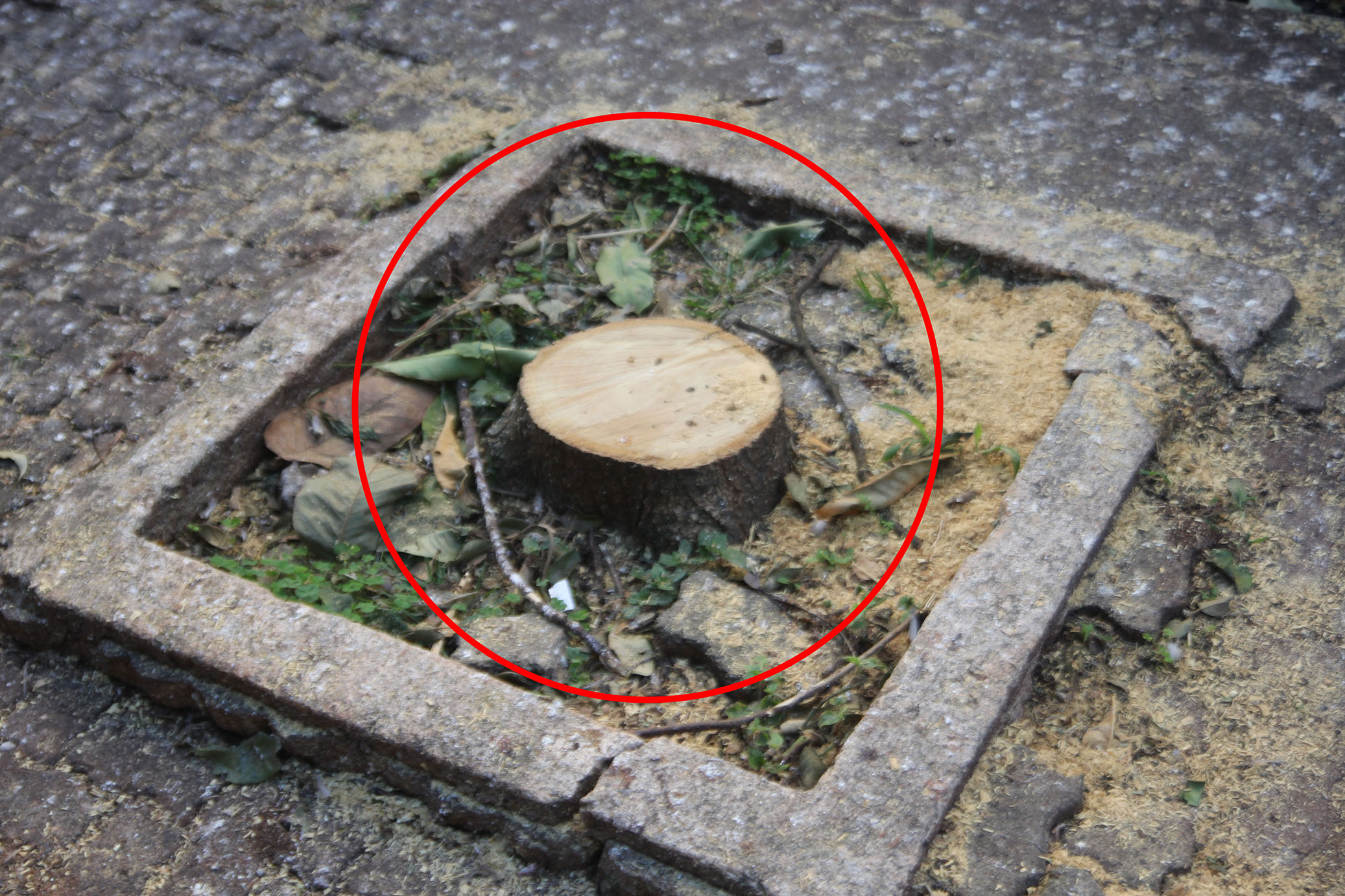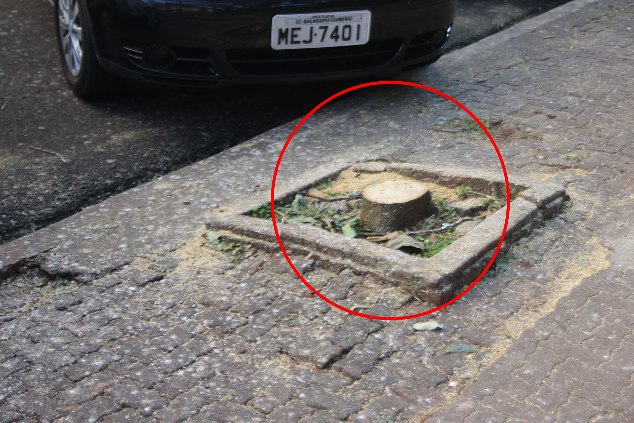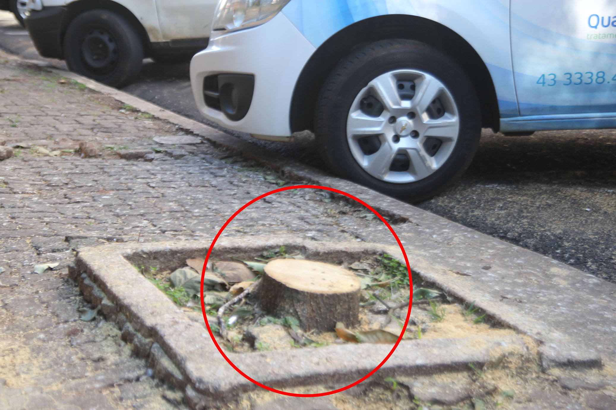 Sem nenhum motivo foi cortada, assim como outras na mesma calçada, todas saudáveis.